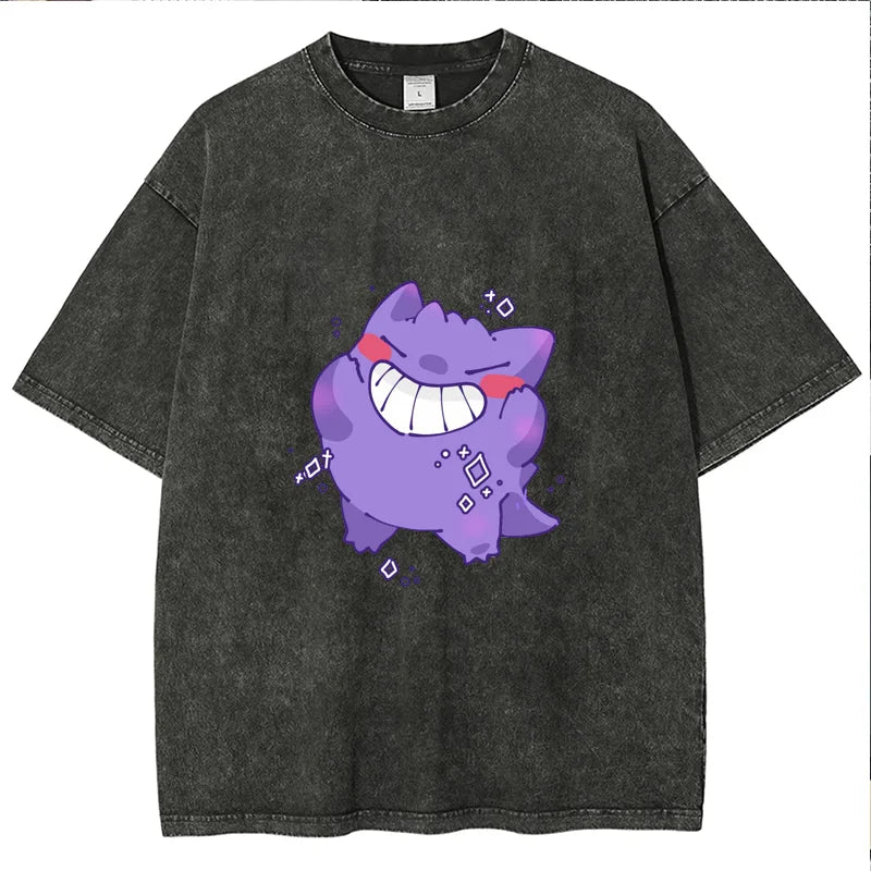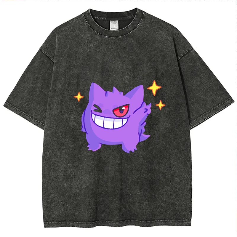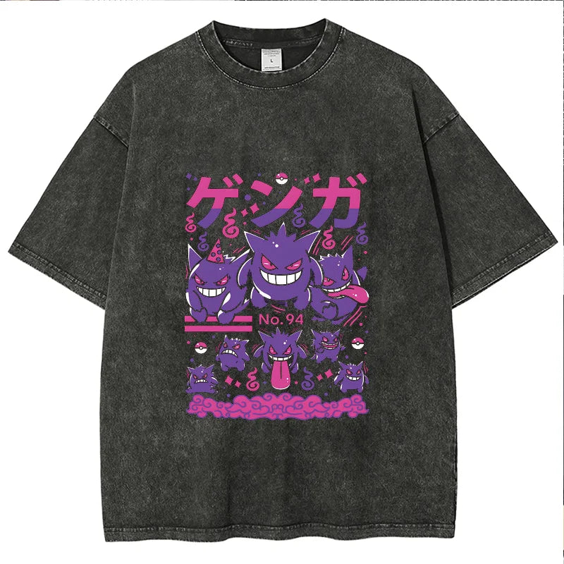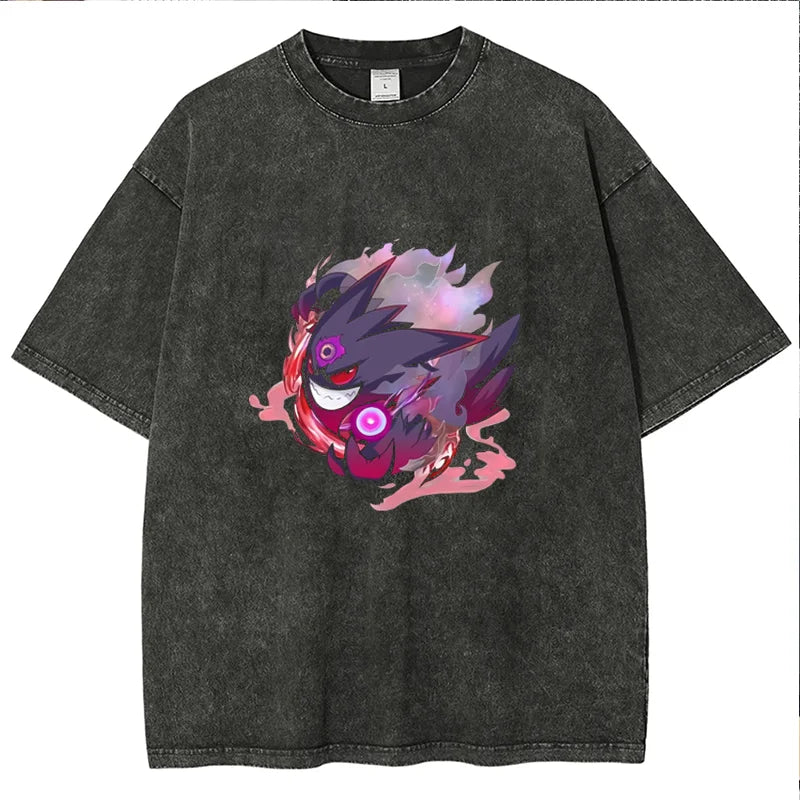 Vintage Washed Genggui Anime T-Shirt – Oversized Hip-Hop Y2K Tee for Men & Women