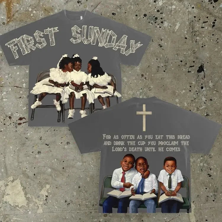 Y2K Vintage “Children First Sunday” Graphic Tee – Oversized Cotton Streetwear T-Shirt for Men & Women